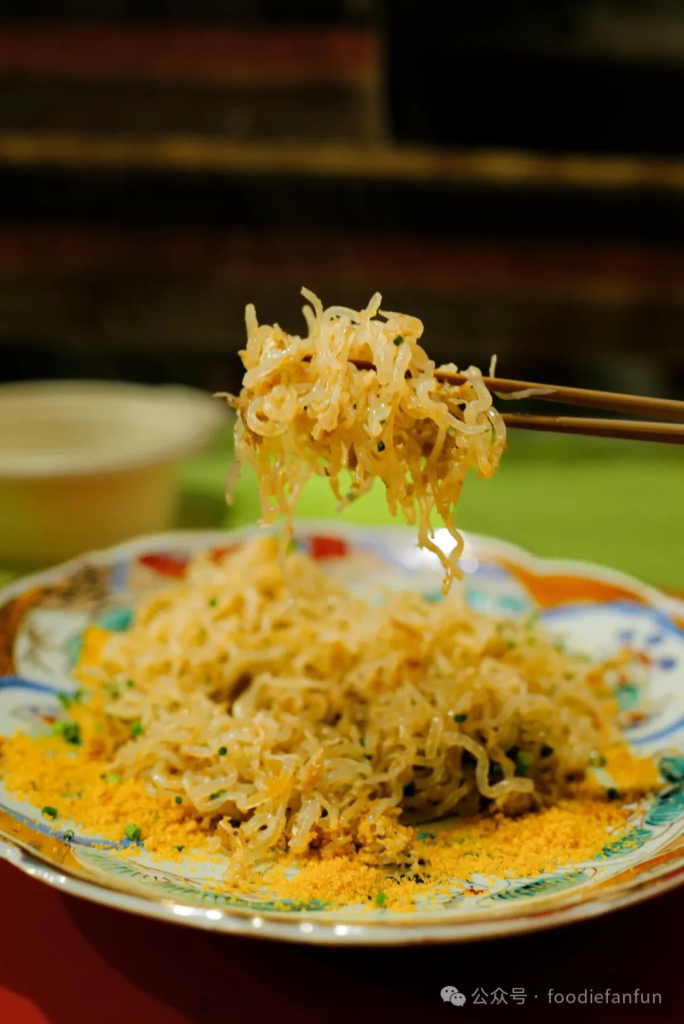 This bottarga “spaghetti” is one of Todaka’s signature East-meets-West creations. On paper it’s bottarga peperoncino, but in the pan it’s pure Chinese-style dryness and heat. He uses glass noodles instead of pasta; they cling to the bottarga’s intense ocean umami and salinity, staying slick but never heavy or tiring. It goes perfectly with drinks—and with rice.