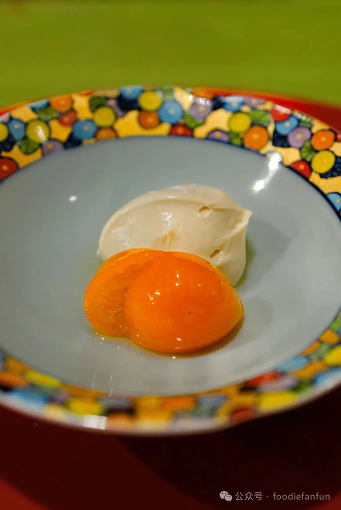 This is “just” shira-ae, the classic tofu dressed salad—but here it’s made with an almost dairy-like smoothness. There’s a faint yogurt note, a dense, silky texture, and then the kumquat comes in with fresh acidity that lifts all the flavors. Soft, but not bland at all.