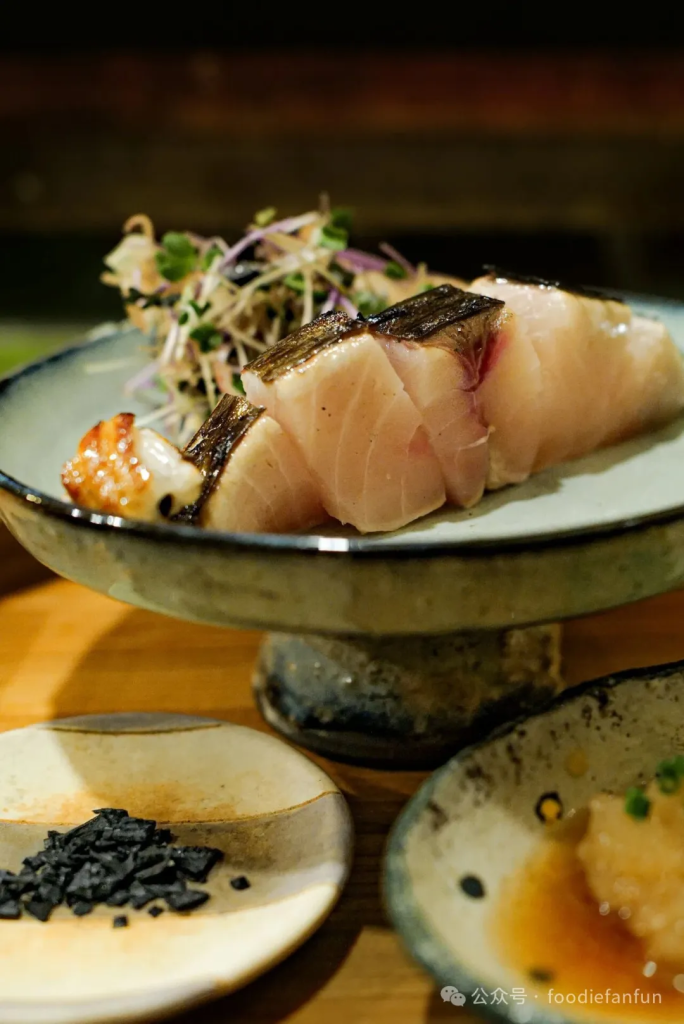 Straw-Seared Mackerel with Charcoal Salt and Daikon Oroshi Ponzu